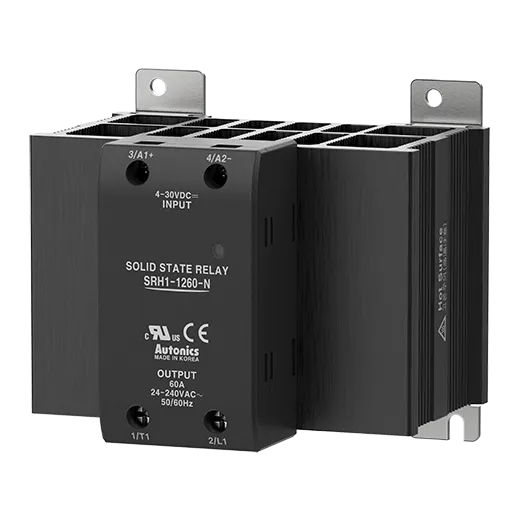Single-Phase Solid State Relays (Integrated Heatsink, Top/Bottom Terminal Type); Input voltage 4-30 VDC; Rate load voltage 24-240 VAC; Rate load current 60A, Zero cross turn-on function