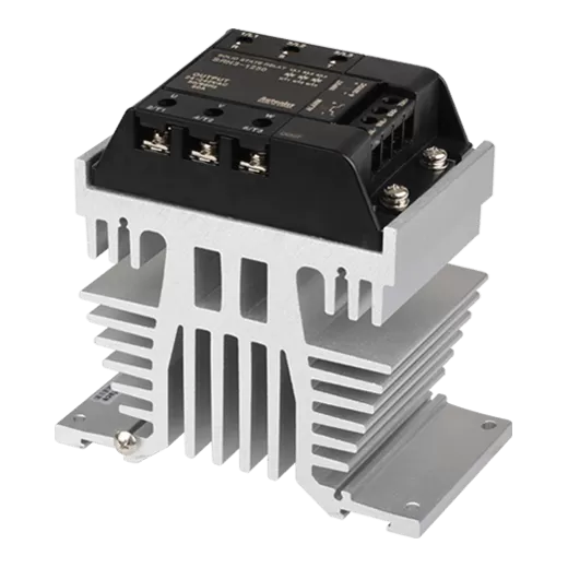 Three-Phase Solid State Relays (Integrated Heatsink Type); Input voltage 4-30 VDC; Rate load voltage 24-240 VAC; Rate load current 50A, Zero cross turn-on function, Number of control phase: 3-phase