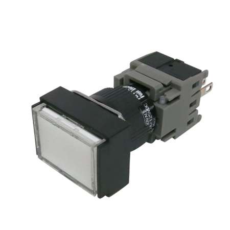Push Button Switch, Ø16mm, Oil tight (IP65), Flush rectangular head, 1NO+1NC, Flat LED 24VDC, White